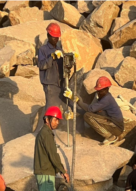 83KM道路工程項(xiàng)目:2023年12月15日,為最大限度的滿足項(xiàng)目施工生產(chǎn)需求,FIANGA碎石場(chǎng)項(xiàng)目組成員不畏艱辛、克服高溫、風(fēng)沙等惡劣環(huán)境,對(duì)礦山進(jìn)行了鉆孔、片石分解轉(zhuǎn)運(yùn)、級(jí)配碎石生產(chǎn)等作業(yè)。